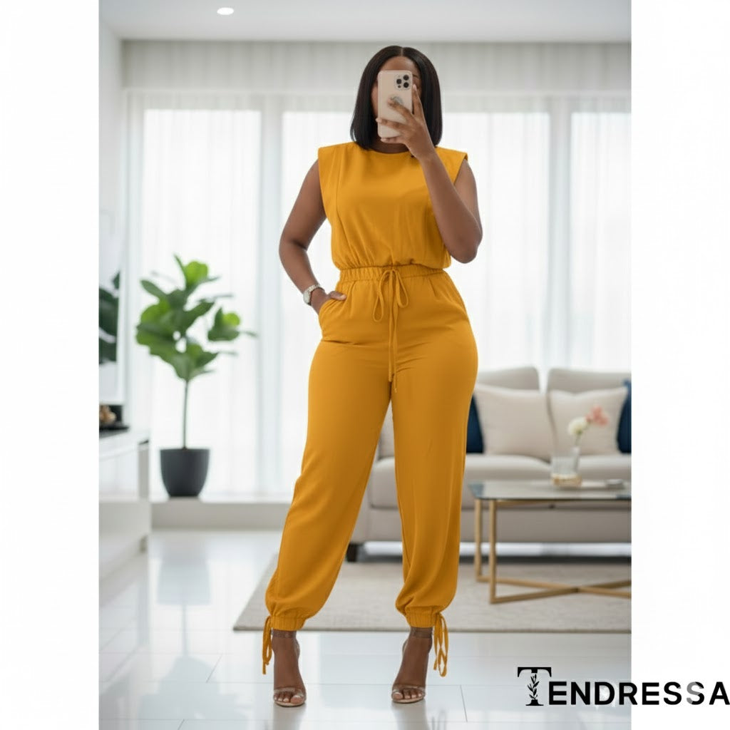 Dotée d’un haut sans manches légèrement ample et d’une taille élastique avec cordon de serrage, cette combinaison s’adapte facilement à toutes les morphologies. Le bas resserré aux chevilles apporte une touche moderne et stylée, parfaite pour un look casual chic maîtrisé.